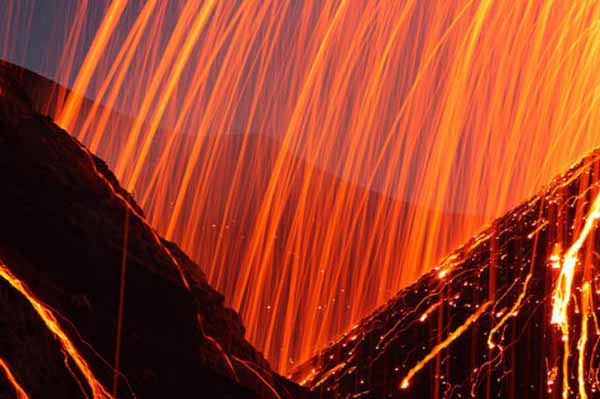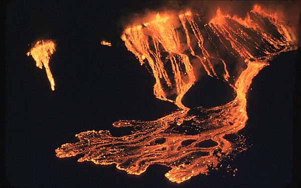 During episode 54 (January 30, 1997), lava erupted from Napau Crater about 4 km uprift from Puu Oo. The rift zone widened about 1.8 m in Napau and 36 cm about 2 km uprift, as magma forced a pathway to the surface. Chemical studies of lava samples from episode 54 indicate that two separate and distinct bodies of magma, stored in the rift zone near Napau Crater for many years, supplied lava for the eruptive activity.
