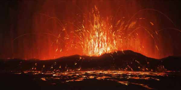 Following the pattern of Hawaiian volcanics, Kīlauea would have started out as a young submarine volcano, gradually building itself up through subsurface eruptions of alkali basalt before emerging from the sea with a series of explosive eruptions about 50,000 to 100,000 years ago. Since then, the volcano's activity has likely been as it is now, a continual stream of effusive and explosive eruptions of roughly the same pattern as its activity in the last 200 or 300 years.